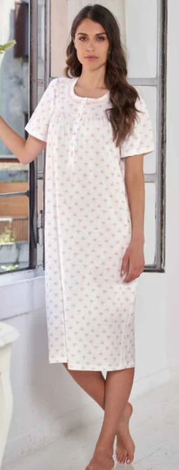 Camicia Da Notte Mezza Manica 100% Cotone Linclalor 74141 Outlet