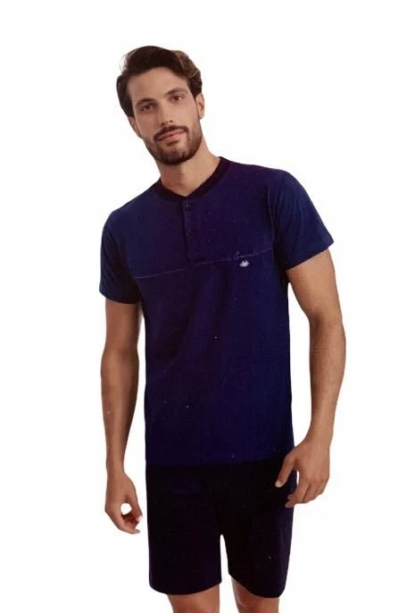 Offerta outlet Pigiama Uomo corto 100% cotone leggero estivo jersey naturale ed anallergico con maglia mezza manica tinta unita aperta a serafino due bottone e pantalone corto tinta unita.