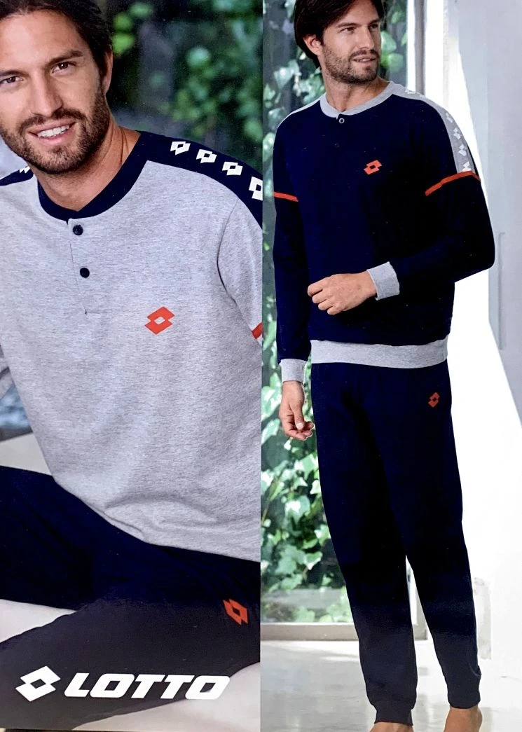 Pigiama Uomo lungo 100% cotone jersey Lotto 4058 prezzo promozionale maglia a serafino e pantalone con bordo